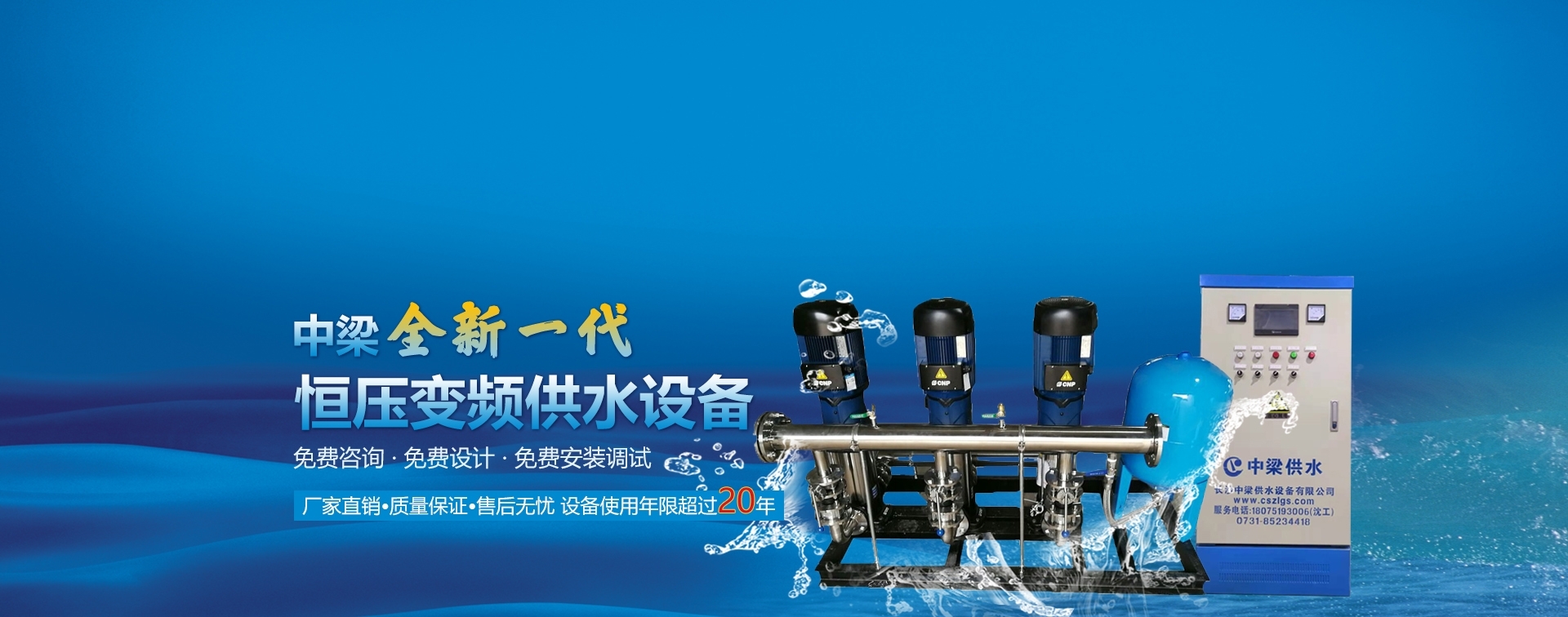 長沙中梁供水設(shè)備有限公司是湖南專業(yè)研發(fā)、設(shè)計、生產(chǎn)供水設(shè)備的技術(shù)企業(yè)。生產(chǎn)的無負(fù)壓供水設(shè)備、恒壓供水設(shè)備、無塔供水設(shè)備和消防穩(wěn)壓設(shè)備等適用于高樓供水、加壓泵站、賓館酒店熱水循環(huán)、小區(qū)改造、水廠自動化系統(tǒng)、管道直飲水,工礦企業(yè)供水等相關(guān)領(lǐng)域 . . .